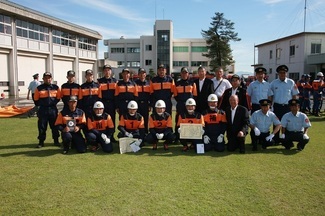 第9分団は見事優勝。第5分団は、惜しくも優勝を逃したものの、優勝した館林消防団と僅差でした(館林が91.50点で、昭和が90.33点。第3位の安中は80.00点)。