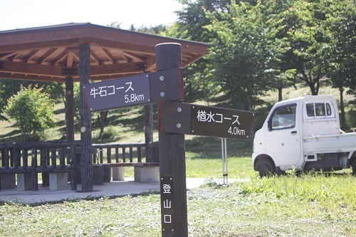 あずまやは平成28年度に完成しました。あずまやの中には入山届が設置してあるので、登山の前には入山届に記入をして、あずまや横にある入山届投函箱に投函してから入山するようにしてください。入山届と一緒に登山道パンフレットも設置してあるので、ご自由にお取りいただき安全な登山をお楽しみください。